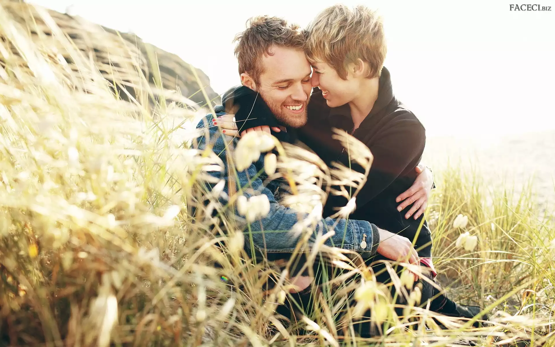 Mężczyzna, Trawy, Kobieta, Para - faceci.biz